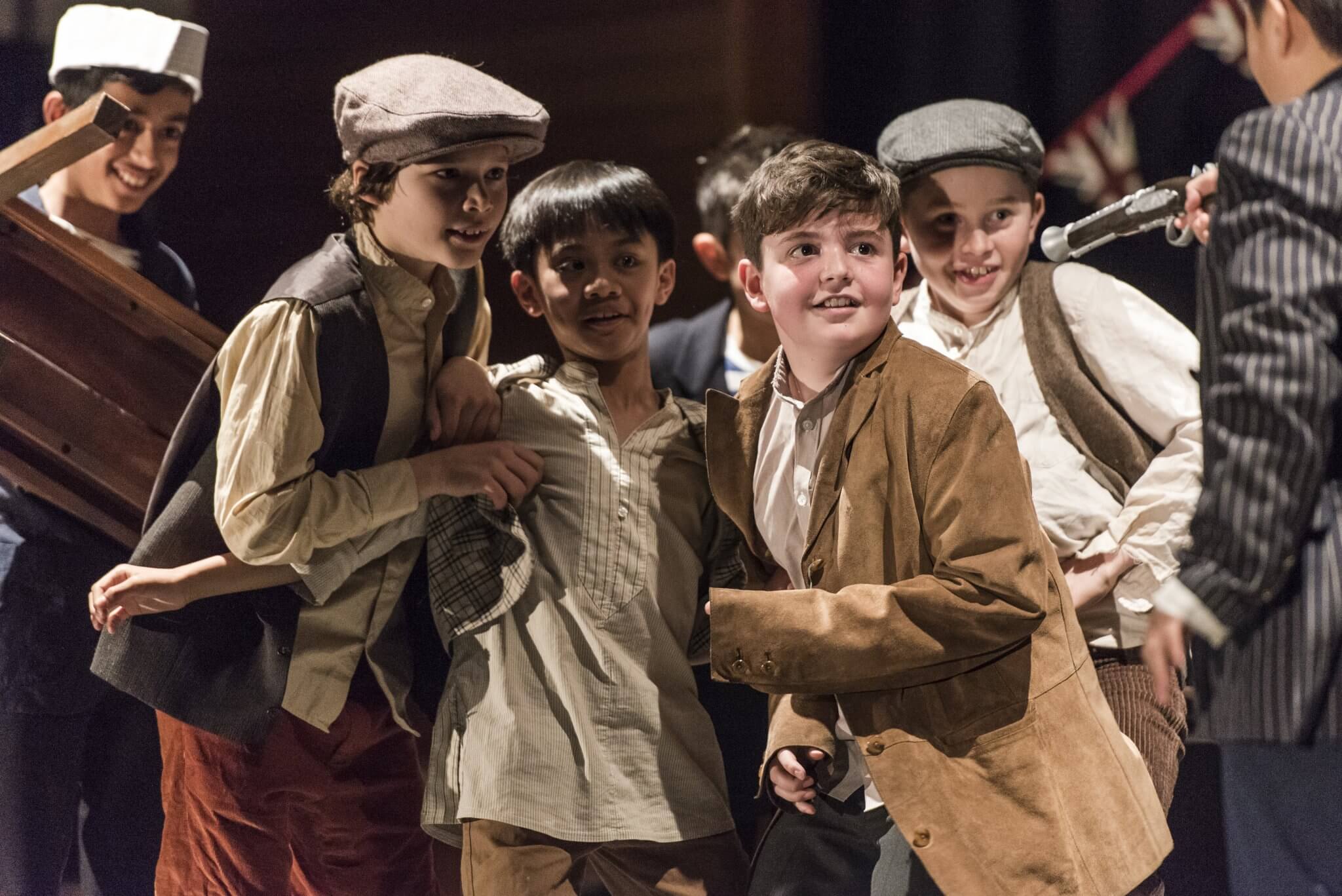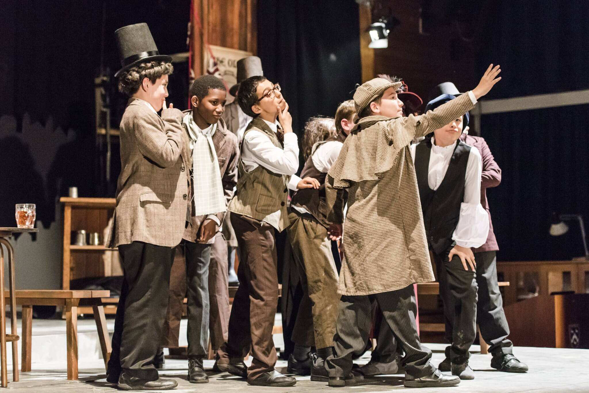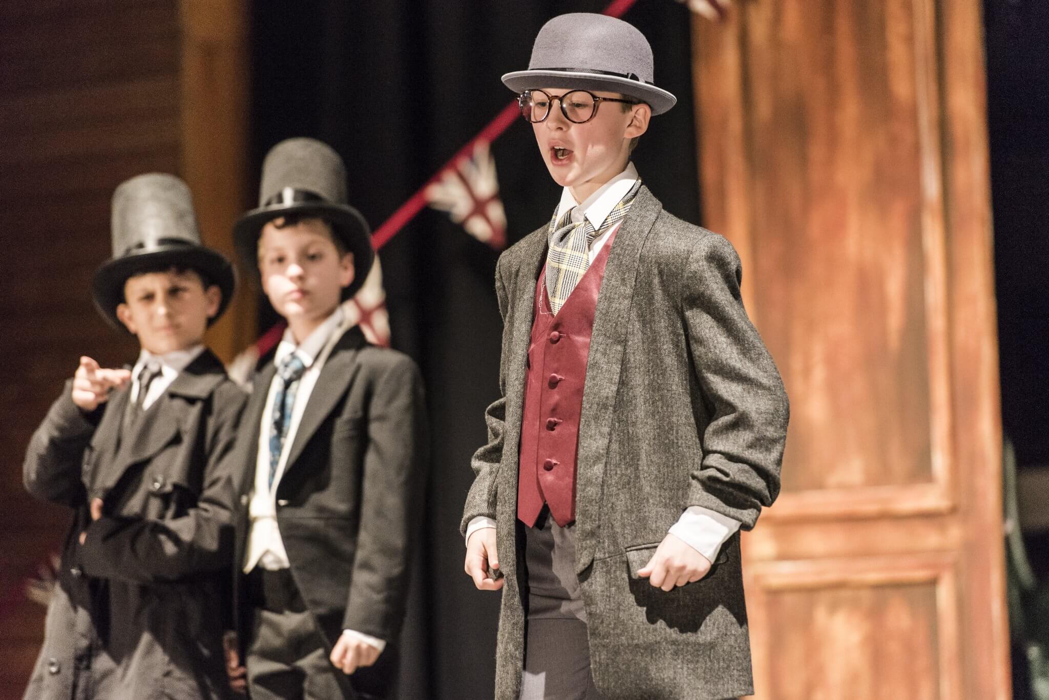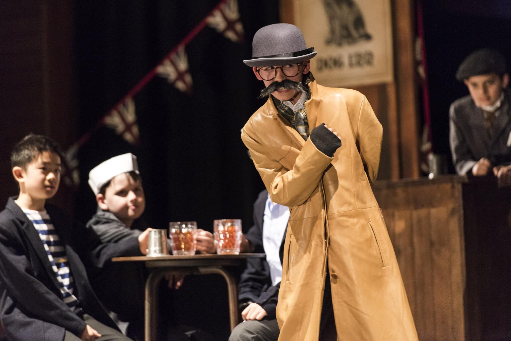 Providing a creative platform and a safe, constructive environment, the First and Second Years benefit from a weekly timetabled lesson. Here they engage with a wide range of topics, dramatists and styles including clowning, mime, ensemble and Shakespeare. One term is set aside for the rehearsal of a production in which the whole year takes part: the Upper First and Upper Second plays as well as the highly-anticipated Lower Second Playwriting Competition. Each year there is an exciting collaboration to look forward to, in which everyone has a part to play. These opportunities are further enhanced by working alongside industry professionals: playwrights and designers who provide outstanding sets and scripts for the pupils.