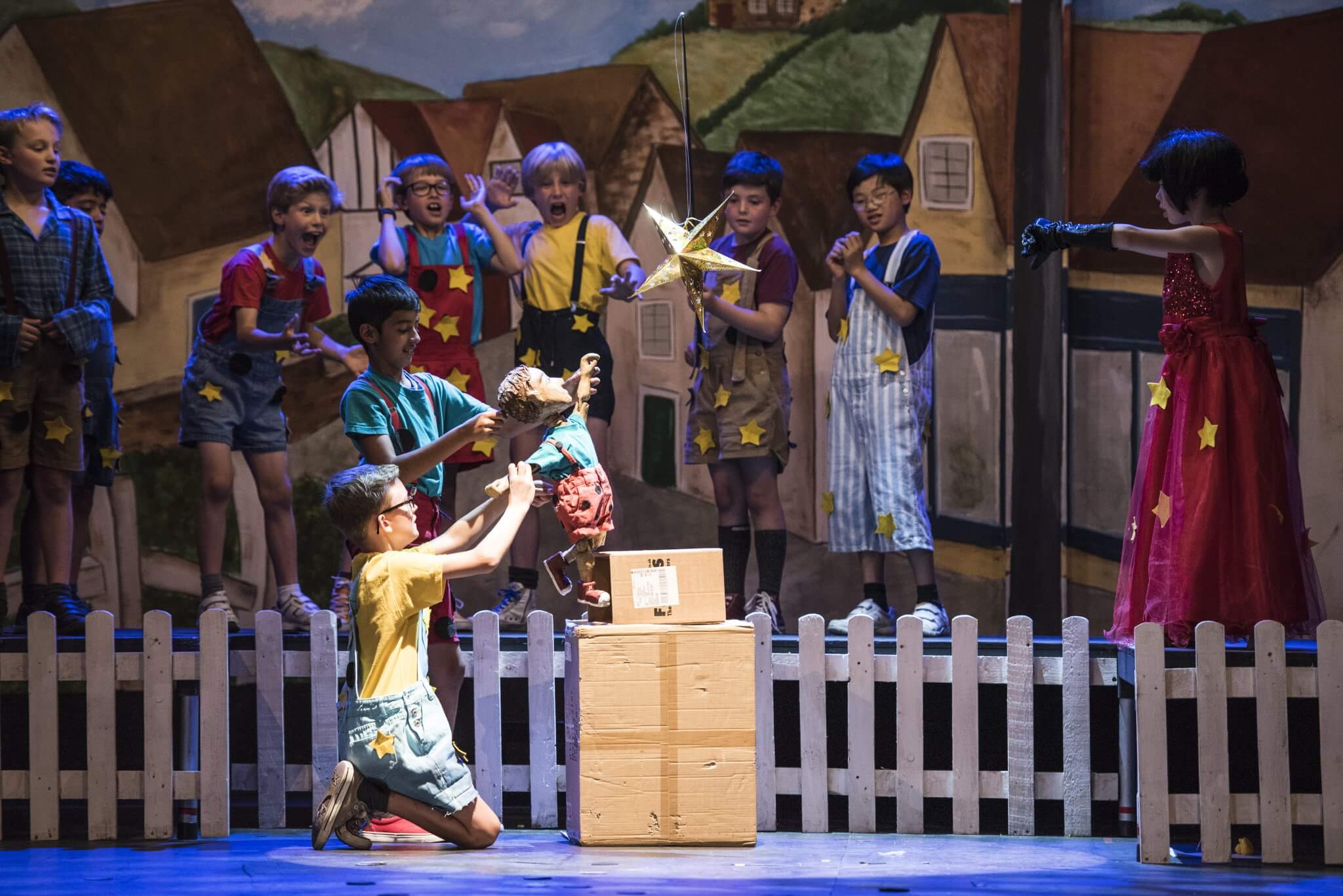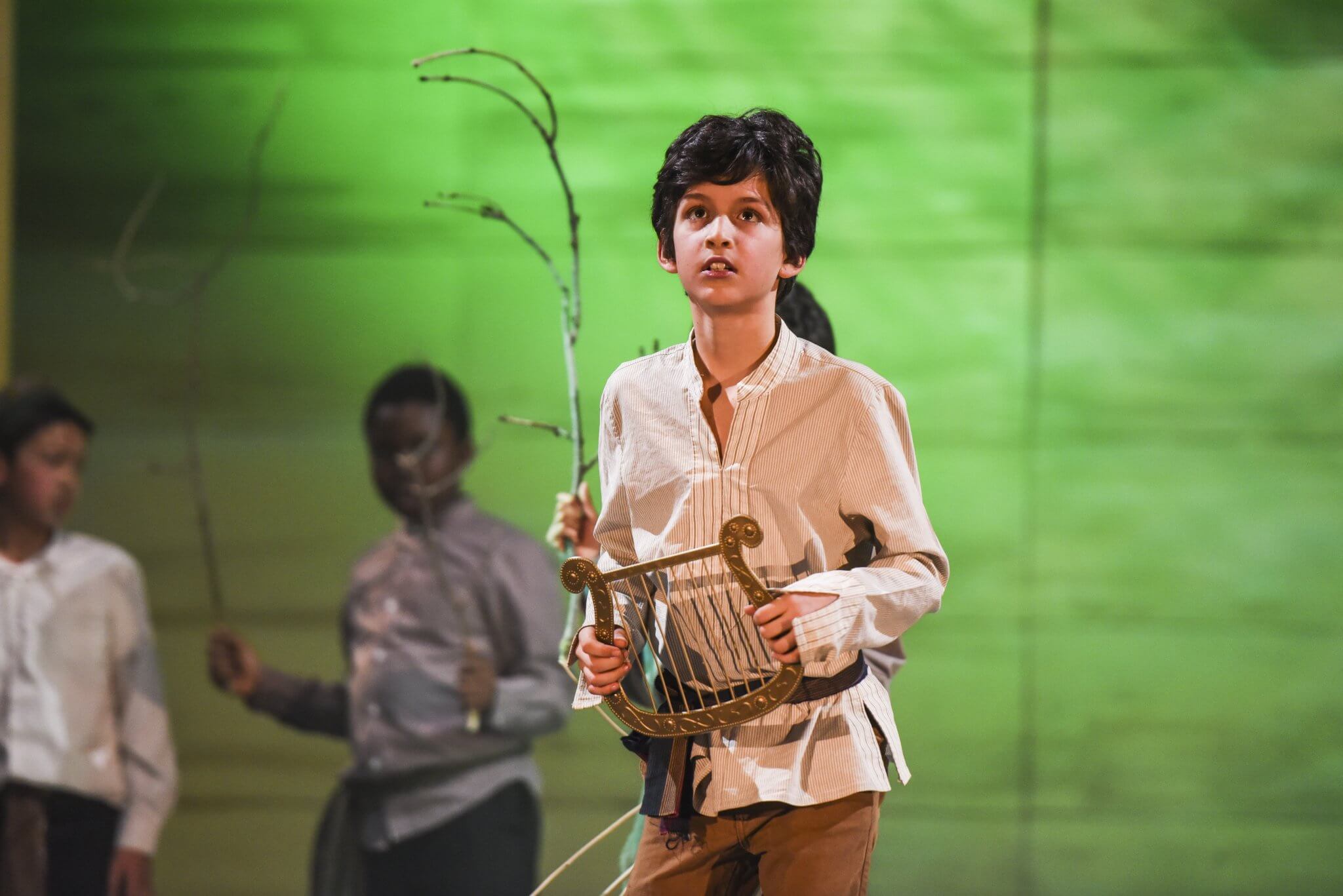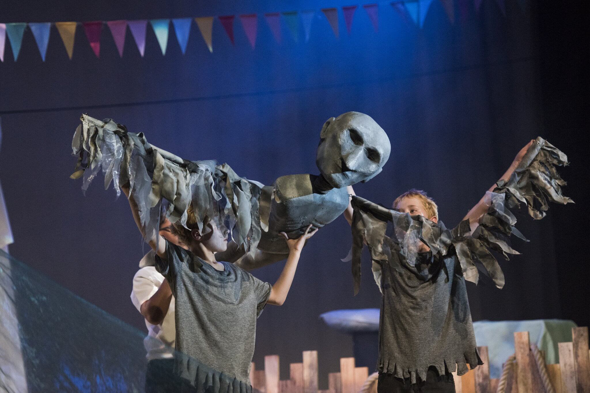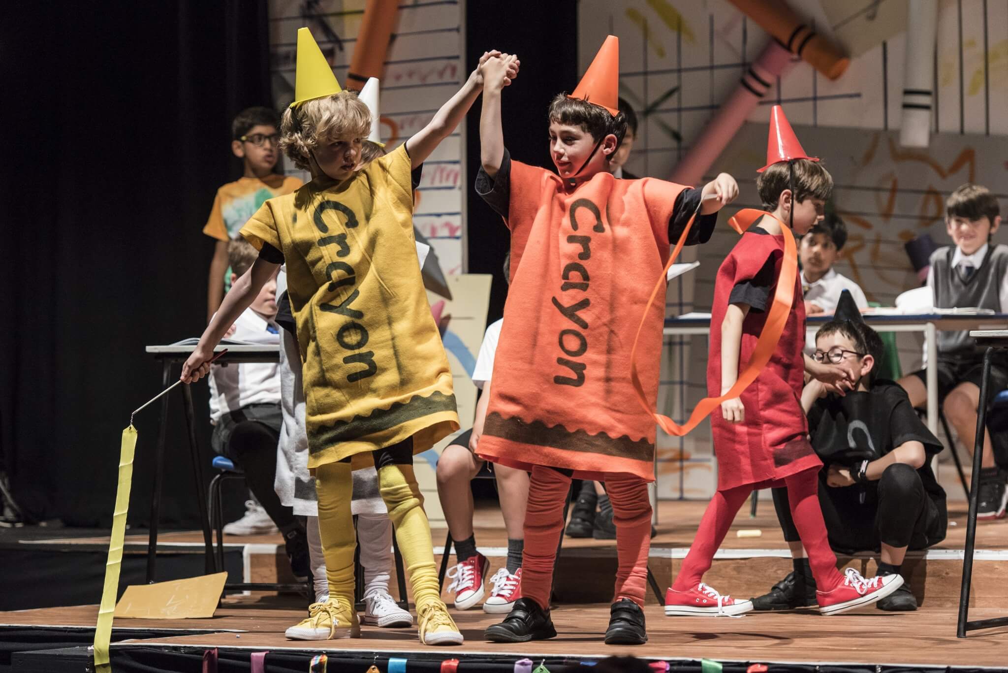 Providing a creative platform and a safe, constructive environment, the First and Second Years benefit from a weekly timetabled lesson. Here they engage with a wide range of topics, dramatists and styles including clowning, mime, ensemble and Shakespeare. One term is set aside for the rehearsal of a production in which the whole year takes part: the Upper First and Upper Second plays as well as the highly-anticipated Lower Second Playwriting Competition. Each year there is an exciting collaboration to look forward to, in which everyone has a part to play. These opportunities are further enhanced by working alongside industry professionals: playwrights and designers who provide outstanding sets and scripts for the pupils.