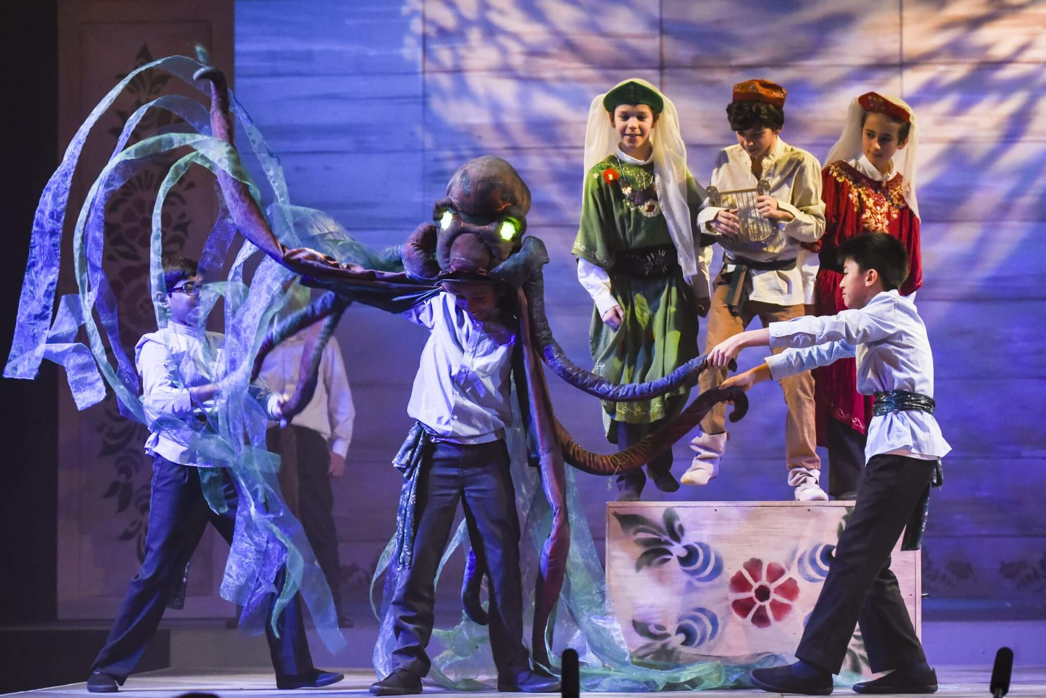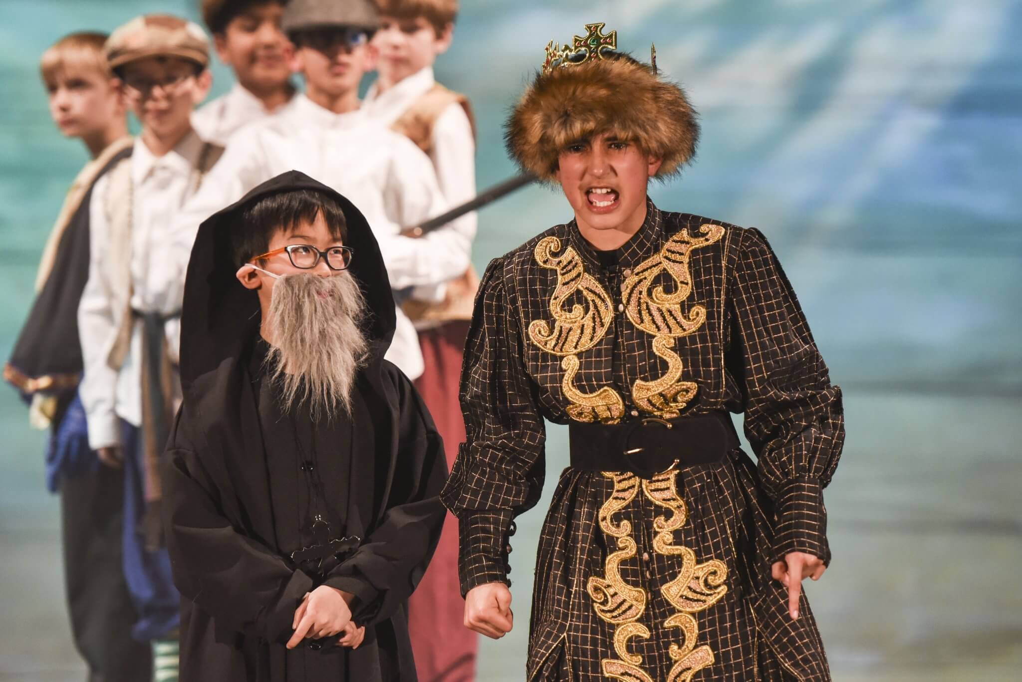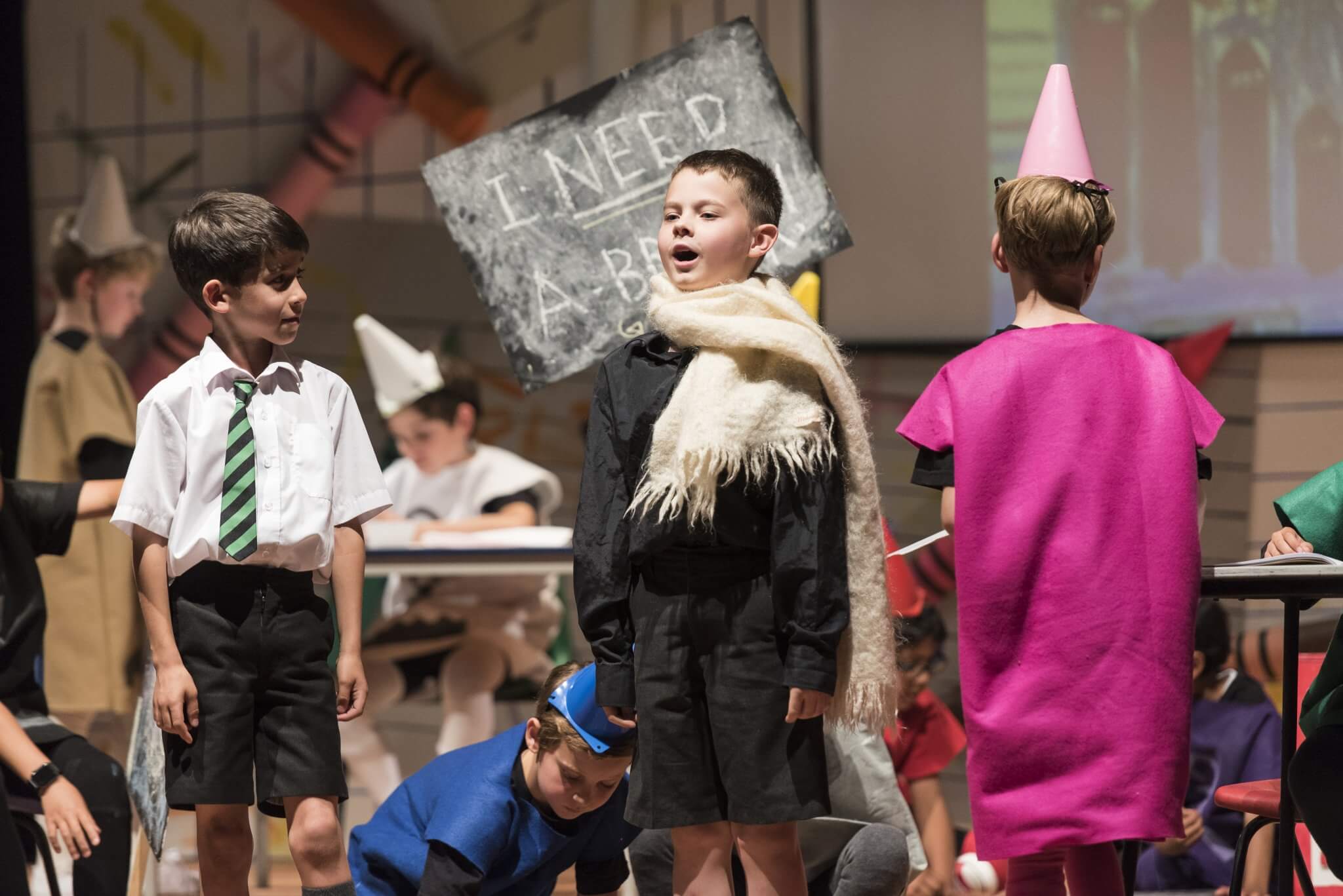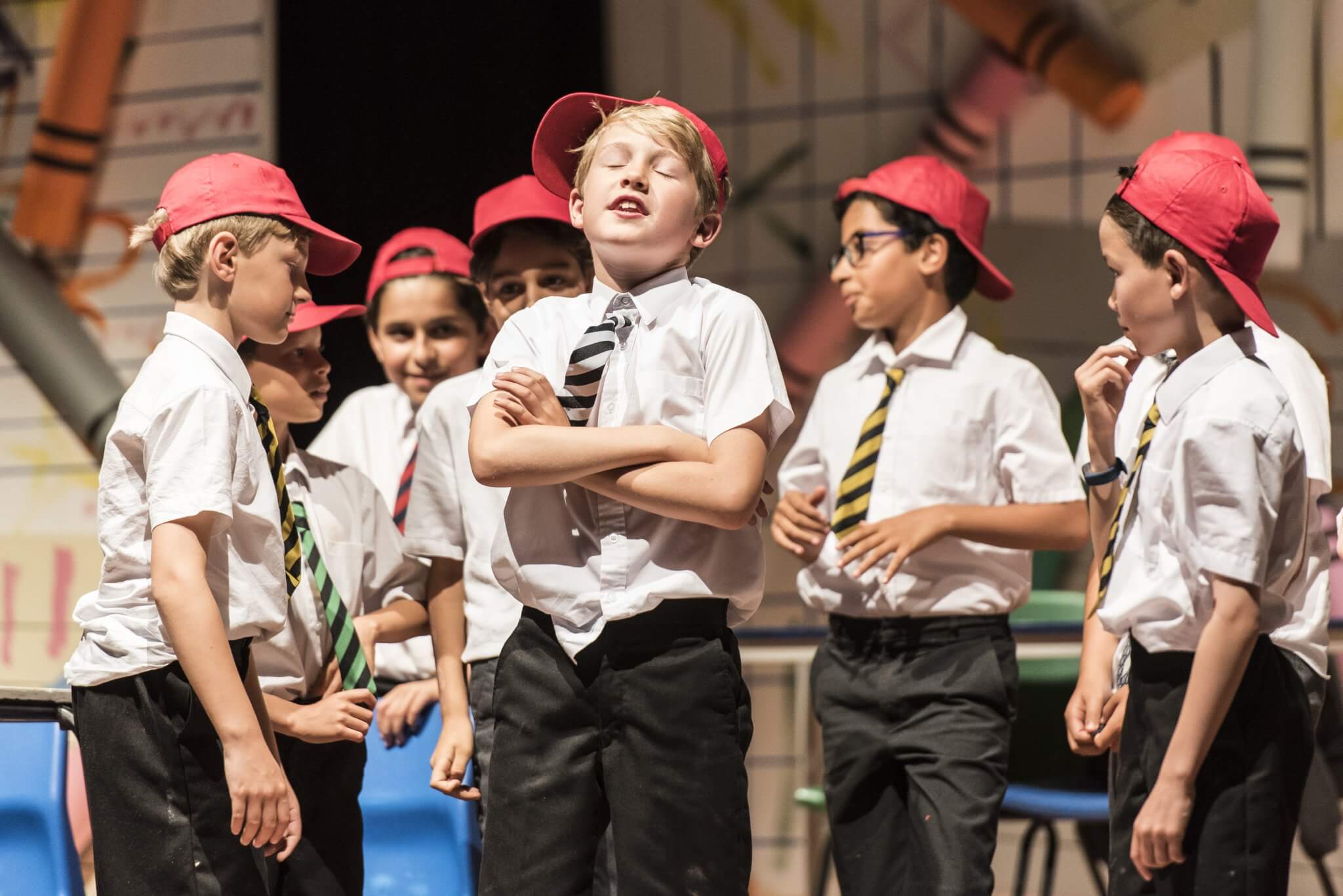 Providing a creative platform and a safe, constructive environment, the First and Second Years benefit from a weekly timetabled lesson. Here they engage with a wide range of topics, dramatists and styles including clowning, mime, ensemble and Shakespeare. One term is set aside for the rehearsal of a production in which the whole year takes part: the Upper First and Upper Second plays as well as the highly-anticipated Lower Second Playwriting Competition. Each year there is an exciting collaboration to look forward to, in which everyone has a part to play. These opportunities are further enhanced by working alongside industry professionals: playwrights and designers who provide outstanding sets and scripts for the pupils.
